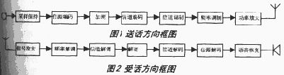 無繩電話系統(tǒng)可分為送話和受話兩個方向。數(shù)字無繩電話當(dāng)然也不例外。圖1和圖2是數(shù)字無繩電話的發(fā)送方向和接受方向系統(tǒng)框圖。