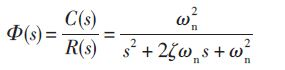 式中:ζ為系統(tǒng)阻尼比;ωn為無阻尼自然振蕩角頻率,單位為rad/s.二階控制系統(tǒng)的動(dòng)態(tài)特性可由以上兩個(gè)參數(shù)描述。二階控制系統(tǒng)在單位階躍信號(hào)作用下,其輸出響應(yīng)可分為以下幾種情況:
