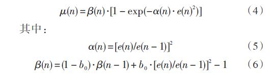 式中:參數(shù)α(n) 控制算法步長變化的形狀和速度,而β(n) 控制函數(shù)的取值范圍。式中的常數(shù)b0 用于調(diào)整取值范圍以滿足算法收斂。