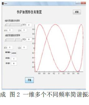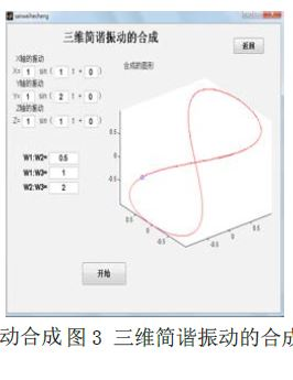 該實(shí)驗(yàn)通過MATLAB 制作,利用MATLAB 作為仿真平臺(tái),動(dòng)態(tài)顯示多個(gè)不同頻率的簡(jiǎn)諧振動(dòng)、互相垂直的不同頻率的兩個(gè)簡(jiǎn)諧振動(dòng)、三維簡(jiǎn)諧振動(dòng)的合成,讓學(xué)生能在計(jì)算機(jī)上形象直觀的認(rèn)識(shí)并掌握三維的簡(jiǎn)諧振動(dòng)的合成圖象,尤其是多個(gè)、稍大頻率的李薩如圖形的合成,得出大頻率李薩如圖形仿真實(shí)驗(yàn)圖象。