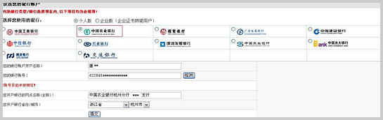 第三步,如右圖。輸入并檢測(cè)您自己的支付賬號(hào),同意選擇您在維庫(kù)電子市場(chǎng)注冊(cè)的會(huì)員賬號(hào)(特殊情況下,可能出現(xiàn)一個(gè)銀行賬號(hào)分別綁定了兩個(gè)不同的維庫(kù)會(huì)員賬號(hào),選擇需慎重)。選擇手續(xù)費(fèi)支付方!