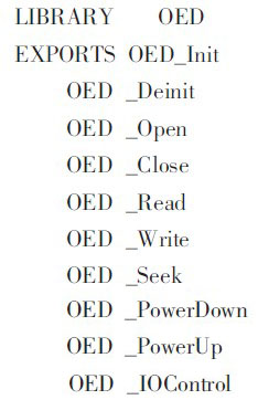 通過配置OED.def 文件導(dǎo)出OLED 提供的接口函數(shù), 供設(shè)備管理器使用。在OED.def 文件中添加如下代碼:
