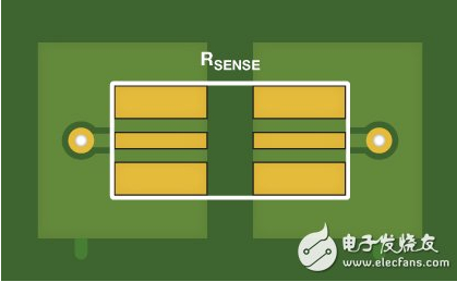 電流調(diào)節(jié)的另一個(gè)關(guān)鍵是適當(dāng)布局連接至檢測電阻。4引腳檢測電阻是理想之選,但可能成本比較昂貴。借助良好的布局技術(shù),我們可以使用傳統(tǒng)的2引腳電阻實(shí)現(xiàn)高,如圖9所示。