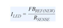 電阻分壓器的必需值可以使用公式1計(jì)算,其中 VSUP是輔助調(diào)節(jié)電壓, FBREF(NEW)是RSENSE兩端的目標(biāo)電壓。