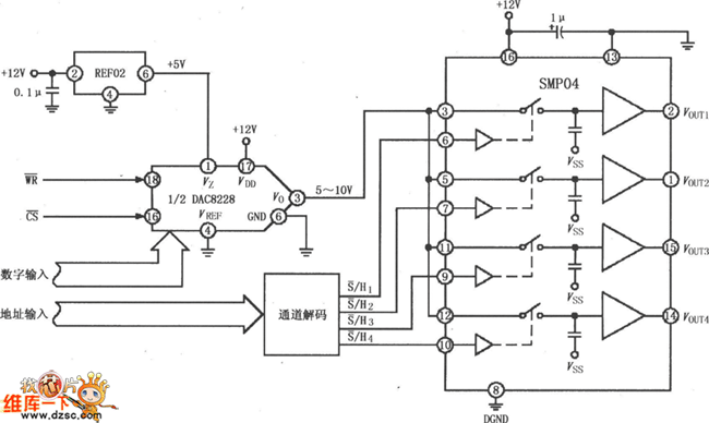 采樣保持放大器SMP04用做多路輸出選擇器電路圖