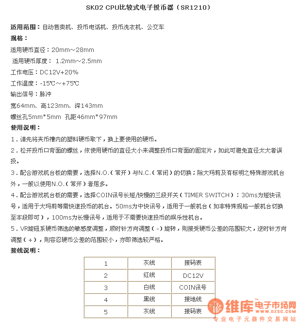 這是常用投幣器資料,接線一般是通用的,顏色也是固定的.你可自已改一下 碼表是一種電磁式號碼機(jī),每投一個幣,號碼加一 你可在白線處拉出信號,若碼表信號不用,也可直接用碼表線來控制 ![]() ![]() * - 本貼最后修改時間:2007-1-10 21:02:45 修改者:tyw |