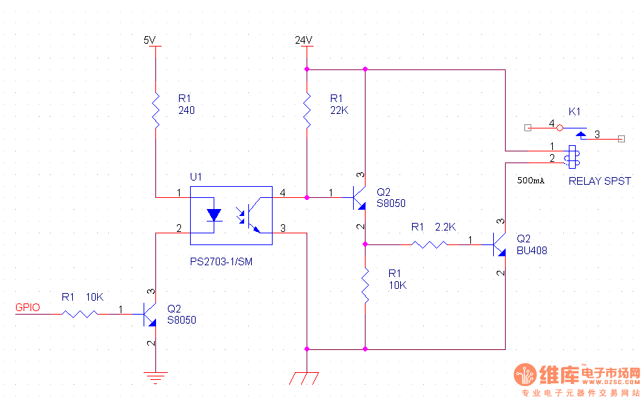 我是搞軟件的,現(xiàn)在需要控制一個24V電磁閥,如圖電路可以嗎.電磁閥電流需要500MA 現(xiàn)在調(diào)試過程中問題是,接24V的S8050在不接B極的電壓也為13.5V,郁悶啊.NPN不應該截止的嗎? 謝謝大家