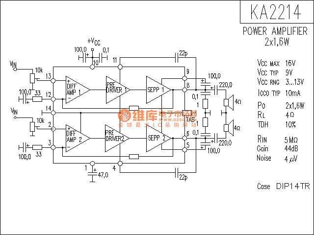 ka2214 音響ic電路圖如圖所示 歡迎轉(zhuǎn)載,信息來(lái)自維庫(kù)電子市場(chǎng)網(wǎng)(www.udpf.com.cn) 來(lái)源:與你同行