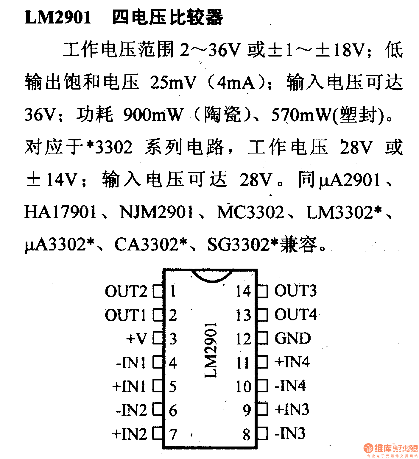 低功耗、低失調(diào)電壓比較器(雙列14腳)